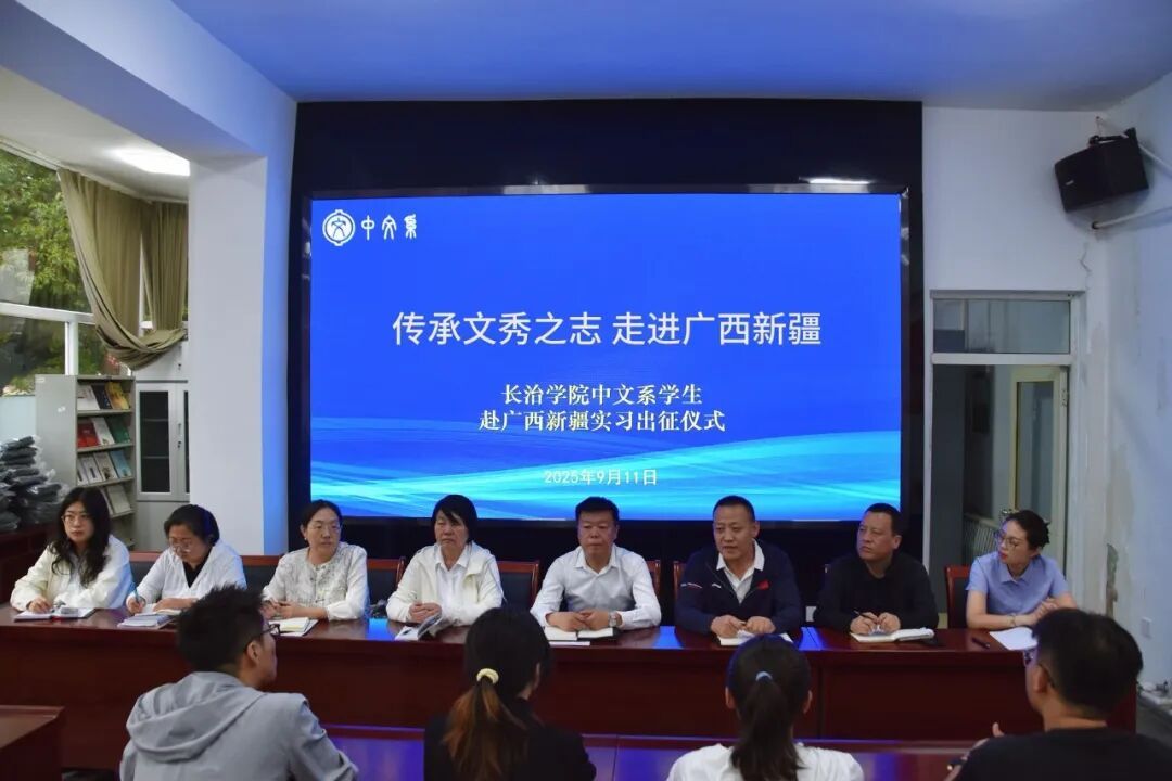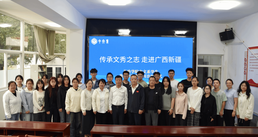 为鼓励学生将专业知识与教学实践相结合,传承文秀之志,9月11日,中文系召开赴广西新疆实习出征仪式。中文系党委书记崔惠军、主任郭旭魁、副书记李素萍、副主任李刚、牛朝霞,23级汉语言专业辅导员及全体赴广西、新疆实习学生参会。