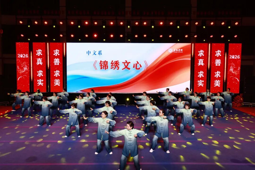 此次展演,既是女教职工绽放巾帼风采的靓丽舞台,也是全校喜迎新年的欢乐盛会。辞旧迎新之际,中文系女教职工们以舒展灵动的舞姿、昂扬向上的姿态,为校园注入满满活力,更渲染出浓厚热烈的节日氛围。展望未来,大家将带着这份赛场之上的活力与从容,深耕三尺讲台,立足育人岗位,以更强健的体魄、更饱满的热情,迎接新一年的机遇与挑战,在立德树人的征程上续写新的华章。