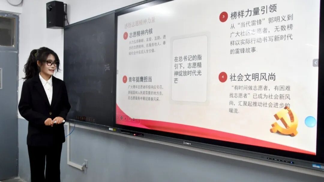 在知识提问环节,韩佩珍结合课件内容与志愿工作实际,提出一系列针对性问题,让同学们在问答中巩固知识、深化认知,也让志愿精神的时代内涵具象化。