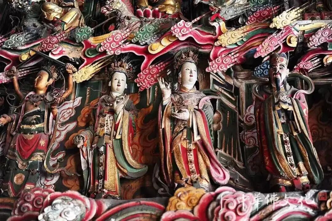 走进大殿,精美的悬塑艺术令人叹为观止。这些悬塑题材丰富,人物形象栩栩如生。观音菩萨端庄慈祥,身边的善财童子、龙女灵动可爱;各路神仙神态各异,或庄重肃穆,或和蔼可亲;护法神将威风凛凛,仿佛随时能从墙壁上跃下。每一尊塑像都凝聚着古代工匠的智慧与心血,其精湛的技艺和细腻的刻画,展现出明代民间雕塑艺术的高超水准。我们的团队成员们纷纷拿出相机、笔记本,仔细记录下这些精美的艺术作品,从雕塑的造型、色彩到工艺细节,不放过任何一个细节,希望通过我们的记录,让更多人领略到这份艺术瑰宝的魅力。