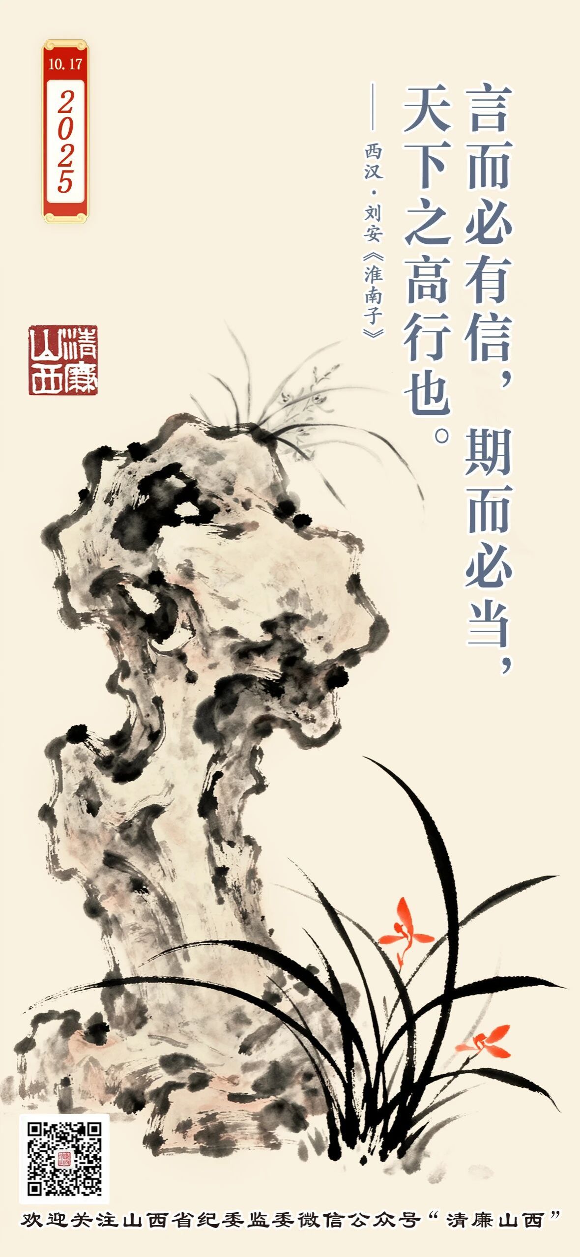 这句话出自西汉时期文学家、思想家刘安主持撰写的《淮南子》。此句大意为,说话一定要讲信用,约定了就一定要做到,这是世上高尚的行为。该句主张言行一致、遵守承诺是崇高的德行。其核心思想强调诚信作为人际交往与社会运行的重要准则,体现了中国传统文化中对道德规范的重视。